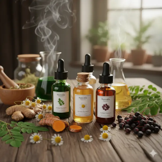 Nutrolix Nature specializes in manufacturing high-ppotency Herbal Extracts. We utilize precise extraction methods to capture and concentrate the key active and beneficial compounds from medicinal herbs.